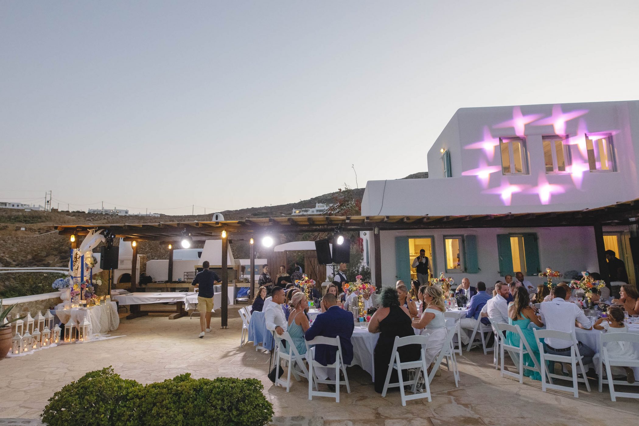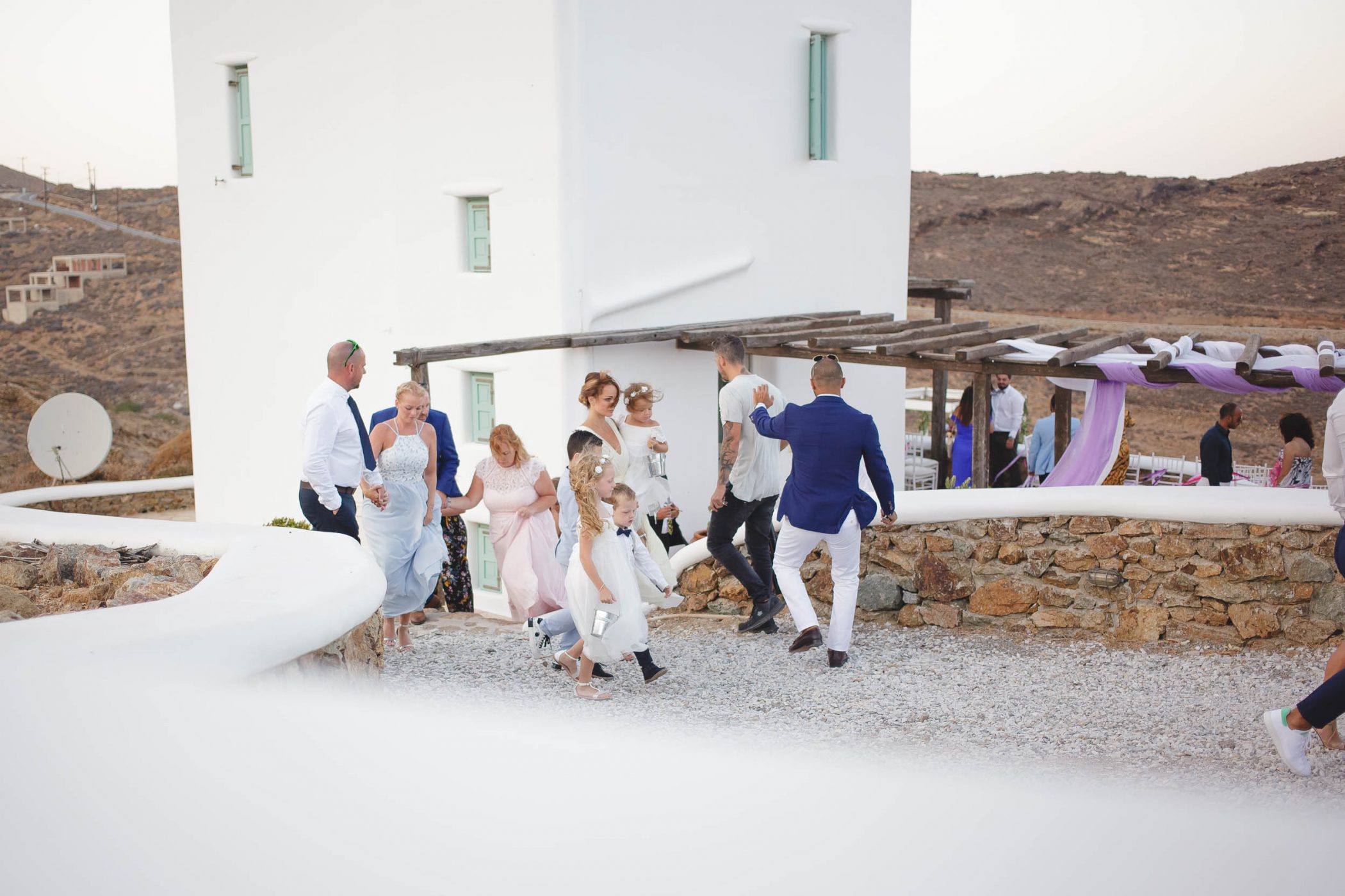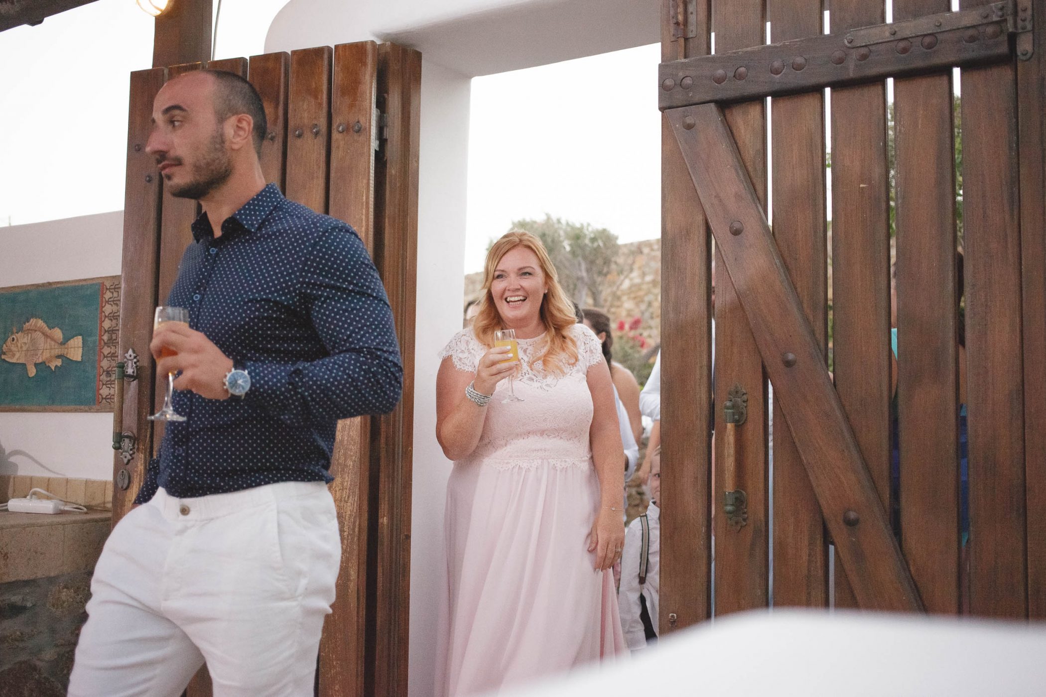 We started with Jad’s and Hannah’s preparation at the two different buildings of the compound. Jad got ready with his father and brothers having a lot of laughs and Hannah got ready with her bridesmaids, mom and mother in law. The ceremony started at sunset and all the guests saw the beautiful couple and,behind them, the glorious view over the bay. After the ceremony we shot with the last remaining light of the day with the couple at the Panormos beach. After the sunset we returned and the party started with a lot of drinks, dance, fun and laughter.