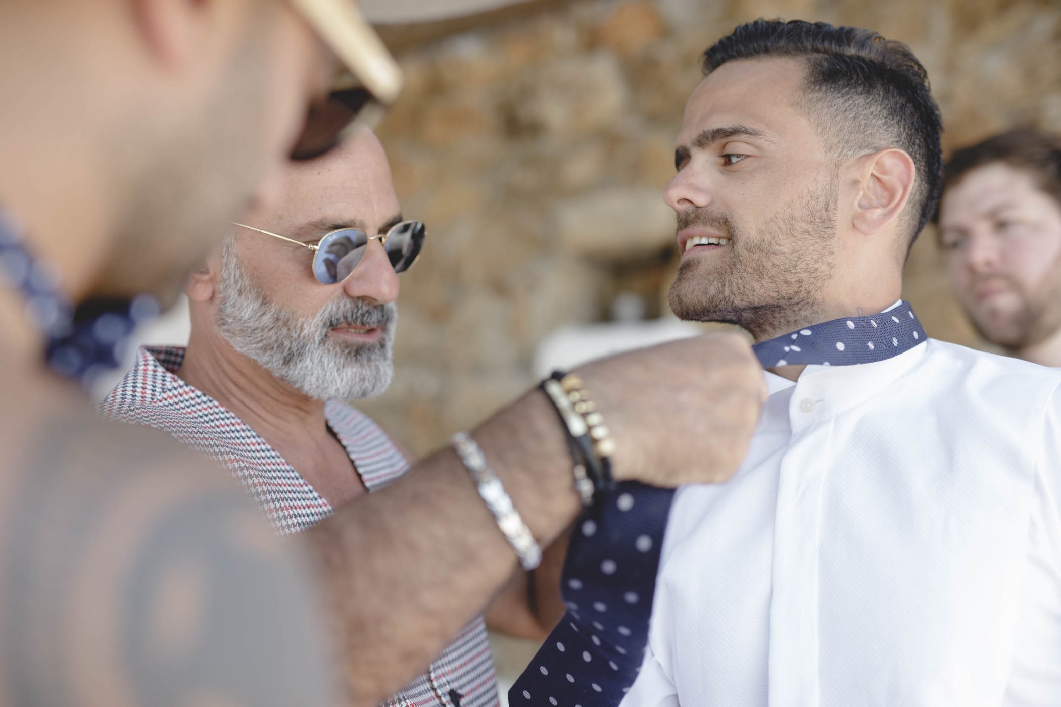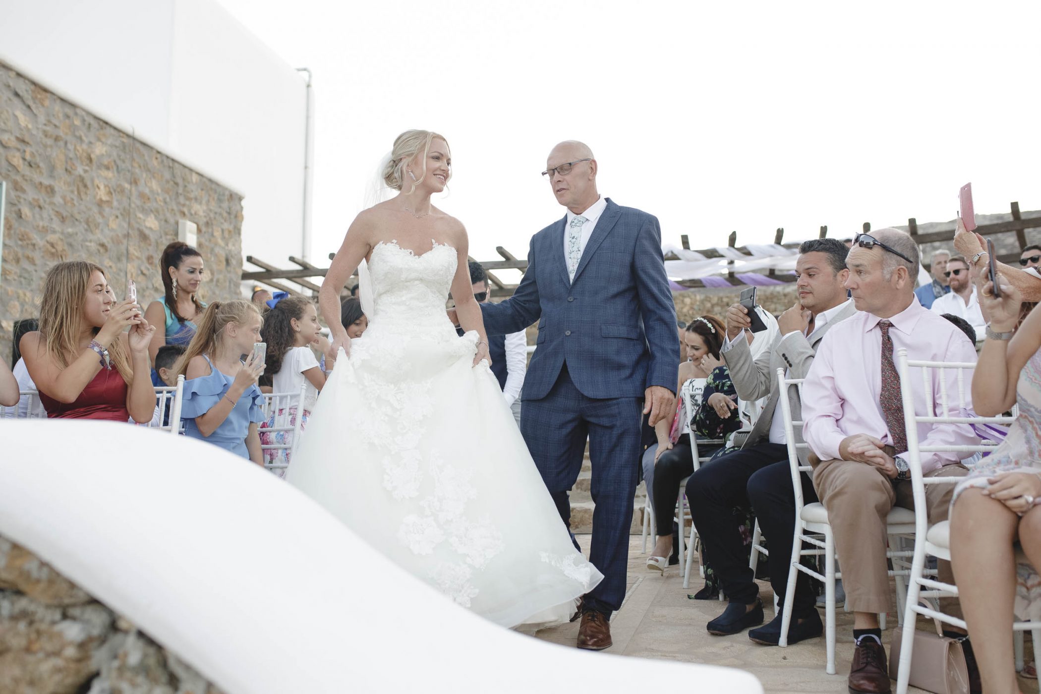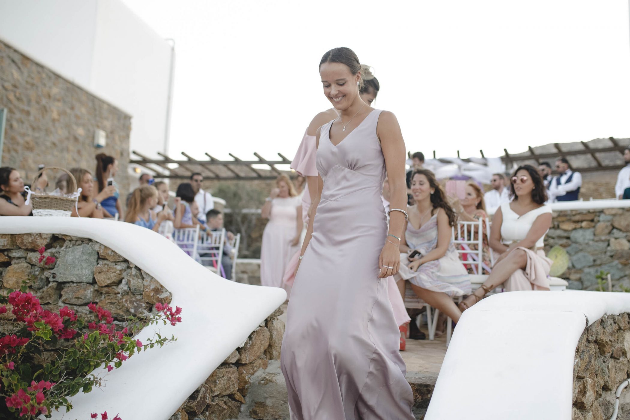 We started with Jad’s and Hannah’s preparation at the two different buildings of the compound. Jad got ready with his father and brothers having a lot of laughs and Hannah got ready with her bridesmaids, mom and mother in law. The ceremony started at sunset and all the guests saw the beautiful couple and,behind them, the glorious view over the bay. After the ceremony we shot with the last remaining light of the day with the couple at the Panormos beach. After the sunset we returned and the party started with a lot of drinks, dance, fun and laughter.