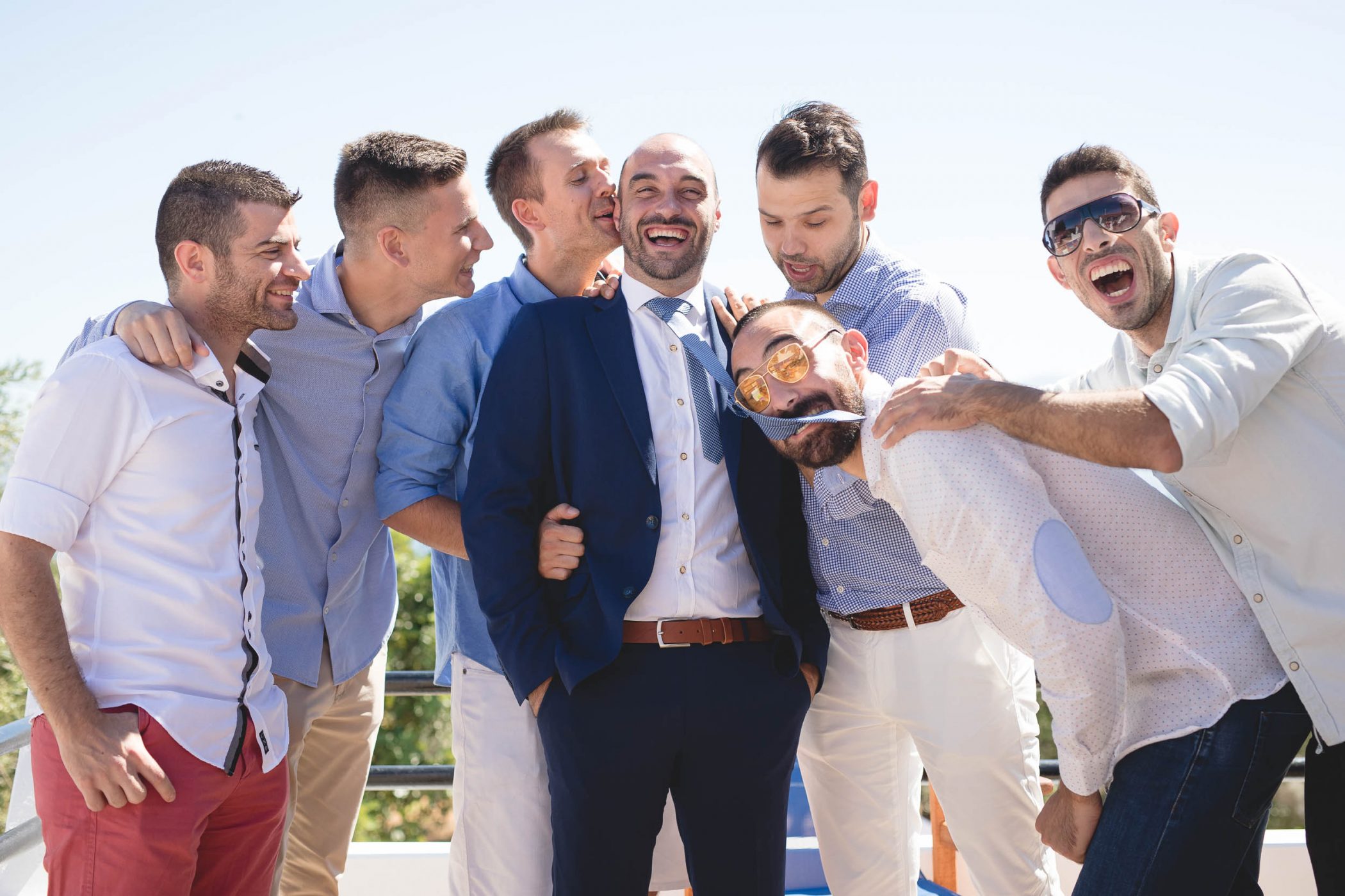 The couple gathered their friends and family on Elafonisos, an island of unique beauty and simplicity. The preparations took place in the same compound with panoramic view of the island. After getting ready with their friends they left for the church of the island. A wonderful white church on a beach. The bright blue sky, the clear light of the sun, the turquoise water of the sea and the white architecture contributed in unique pictures. After the ceremony we followed them to the wedding party at a beach bar at the famous Simos beach. Everyone end up swimming at the crystal clear water of the sea on sunset. The greatest way for a wedding day to end!